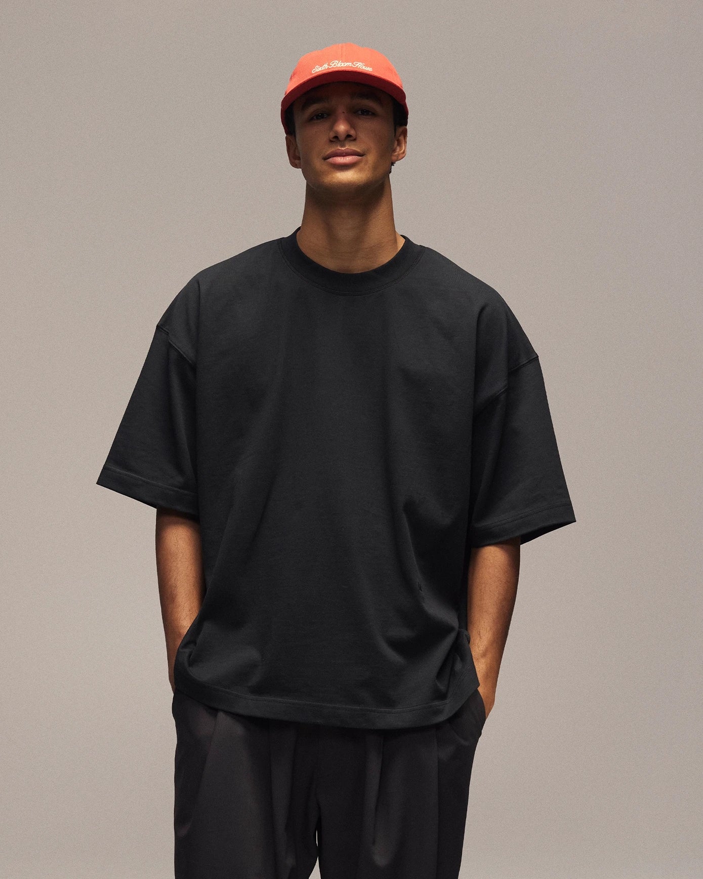 The Sixth Bloom House Logo Blank T-Shirt is crafted from a premium 250GSM plaited jersey for a structured, elevated drape.